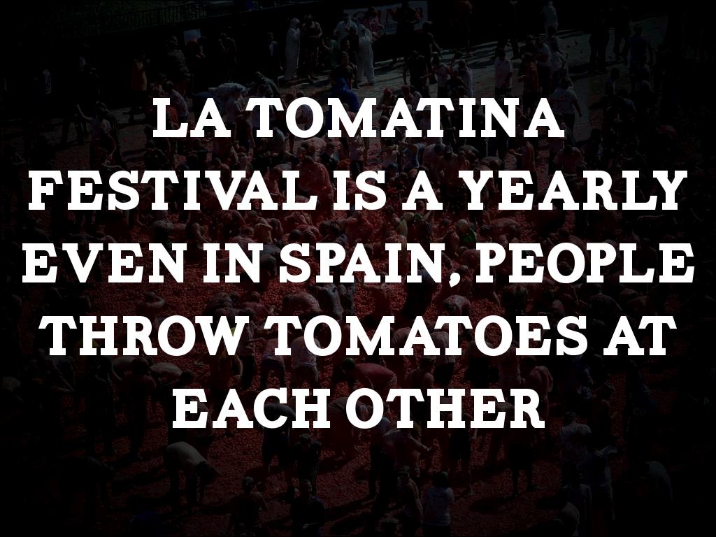 La tomatina festival is a yearly even in spain, people throw tomatoes at each other