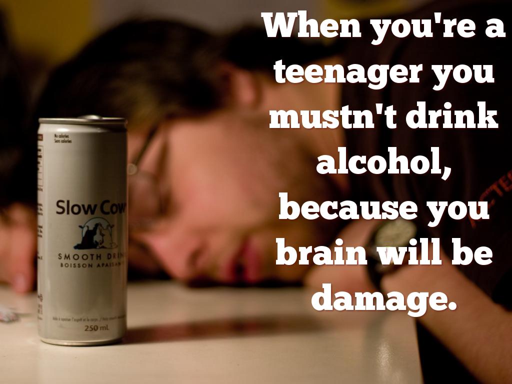 When you're a teenager you mustn't drink alcohol, because you brain will be damage.