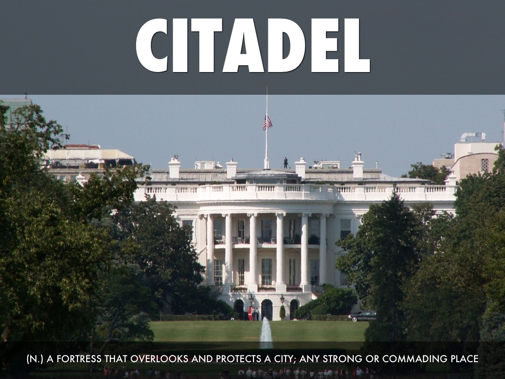 (N.) A FORTRESS THAT OVERLOOKS AND PROTECTS A CITY; ANY STRONG OR COMMADING PLACE