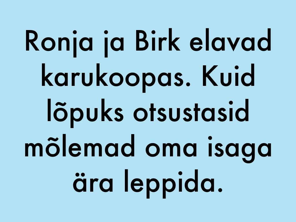 Ronja ja Birk elavad karukoopas. Kuid lõpuks otsustasid mõlemad oma isaga ära leppida.