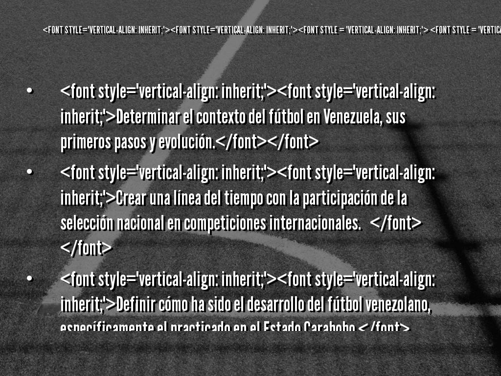 • Determinar el contexto del fútbol en Venezuela, sus primeros pasos y evolución.