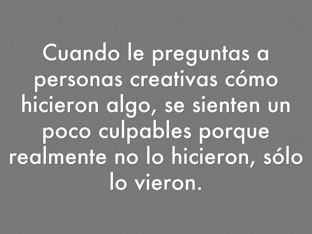 Cuando le preguntas a personas creativas cómo hicieron algo, se sienten un poco culpables porque realmente no lo hicieron, sólo lo vieron.