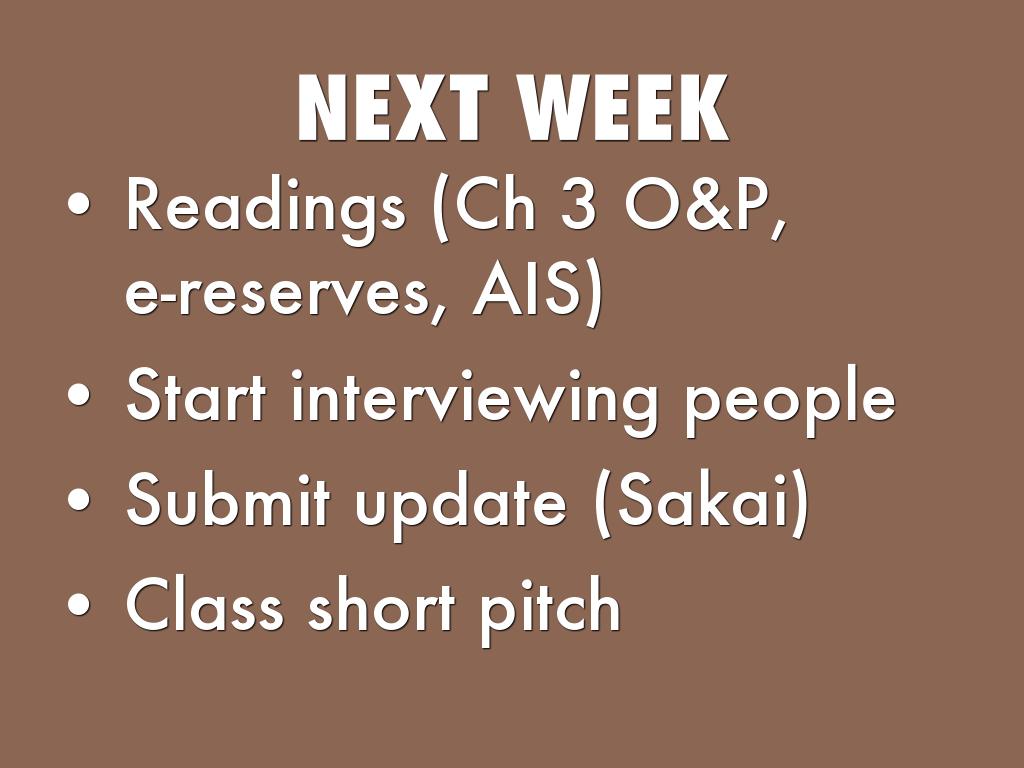 Readings (Ch 3 O&P, e-reserves, AIS)