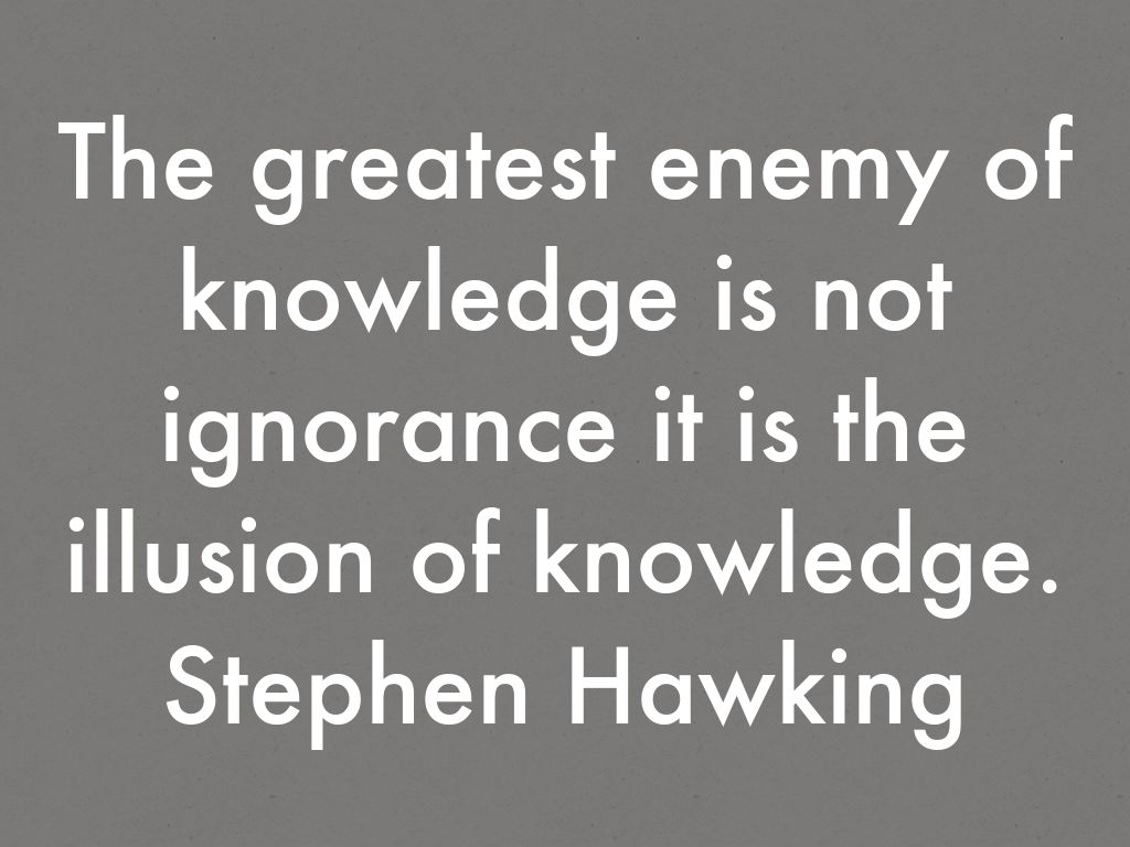 The greatest enemy of knowledge is not ignorance it is the illusion of knowledge. Stephen Hawking