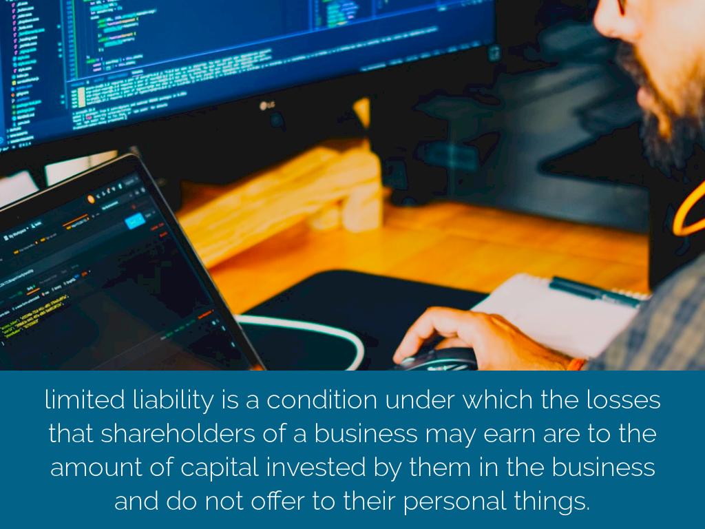 limited liability is a condition under which the losses that shareholders of a business may earn are to the amount of capital invested by them in the business and do not offer to their personal things.