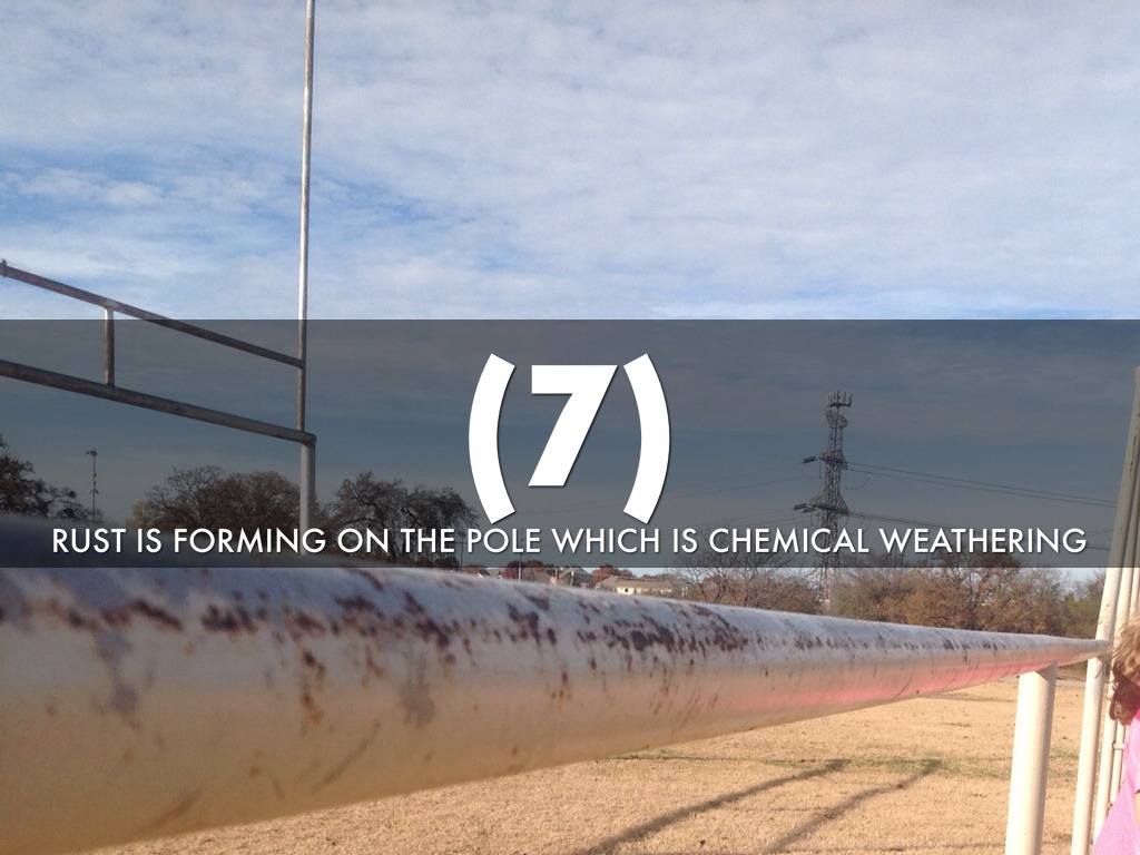 RUST IS FORMING ON THE POLE WHICH IS CHEMICAL WEATHERING