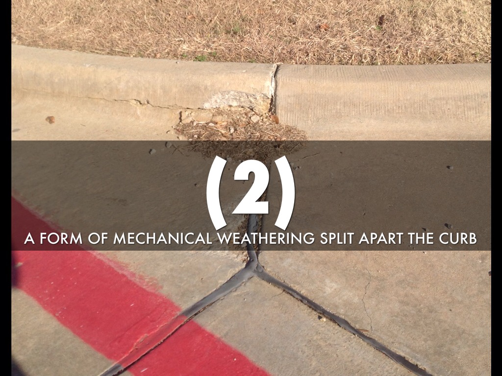 A FORM OF MECHANICAL WEATHERING SPLIT APART THE CURB