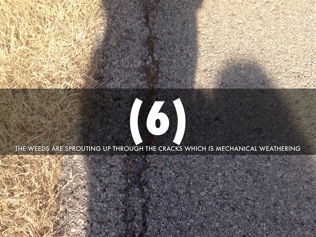 THE WEEDS ARE SPROUTING UP THROUGH THE CRACKS WHICH IS MECHANICAL WEATHERING
