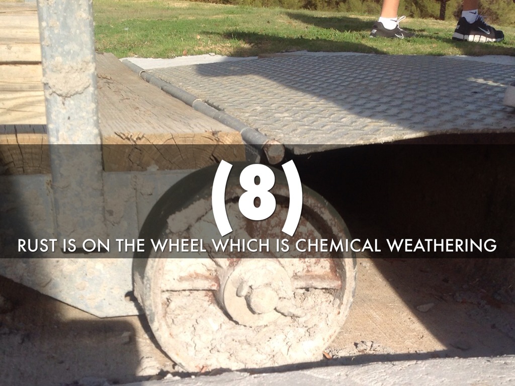 RUST IS ON THE WHEEL WHICH IS CHEMICAL WEATHERING