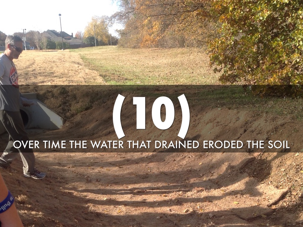OVER TIME THE WATER THAT DRAINED ERODED THE SOIL