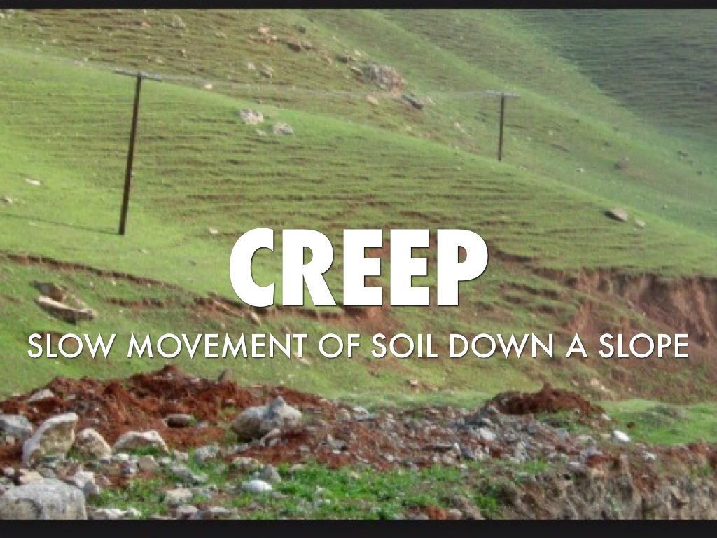 SLOW MOVEMENT OF SOIL DOWN A SLOPE