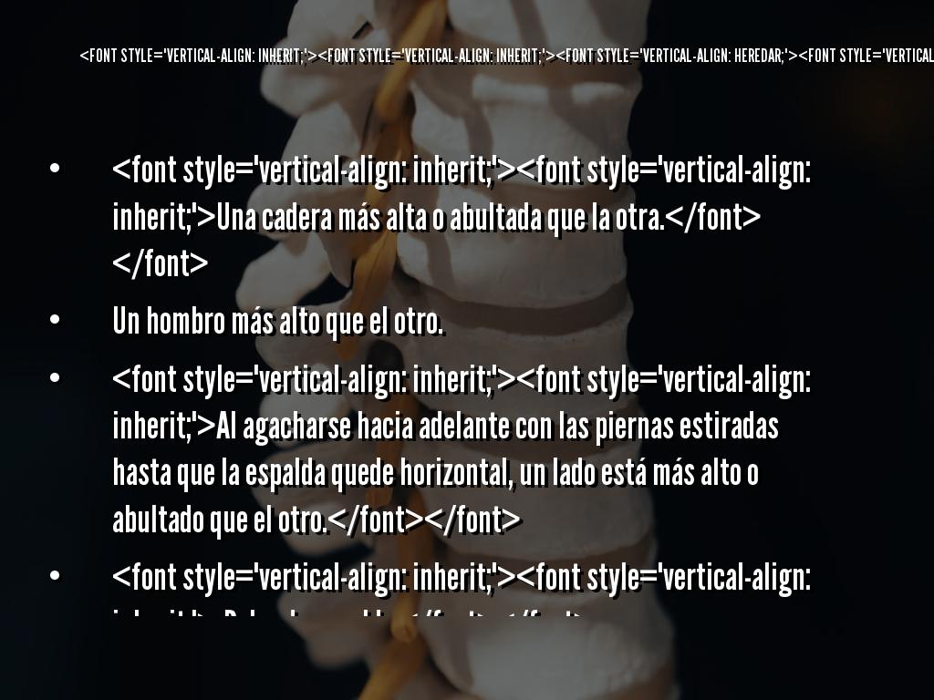 Al agacharse hacia adelante con las piernas estiradas hasta que la espalda quede horizontal, un lado está más alto o abultado que el otro.