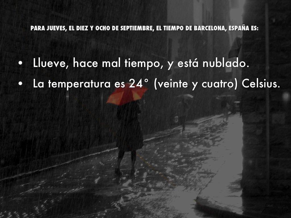 PARA JUEVES, EL DIEZ Y OCHO DE SEPTIEMBRE, EL TIEMPO DE BARCELONA, ESPAÑA ES:
