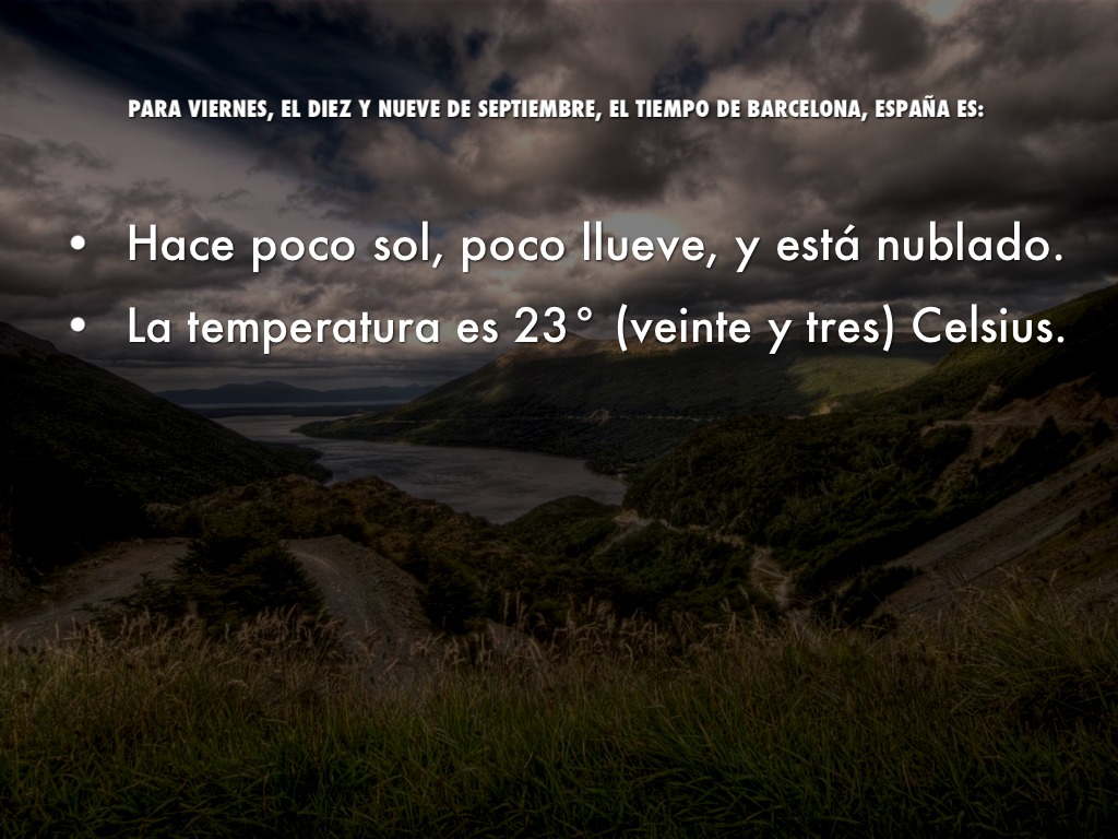 PARA VIERNES, EL DIEZ Y NUEVE DE SEPTIEMBRE, EL TIEMPO DE BARCELONA, ESPAÑA ES: