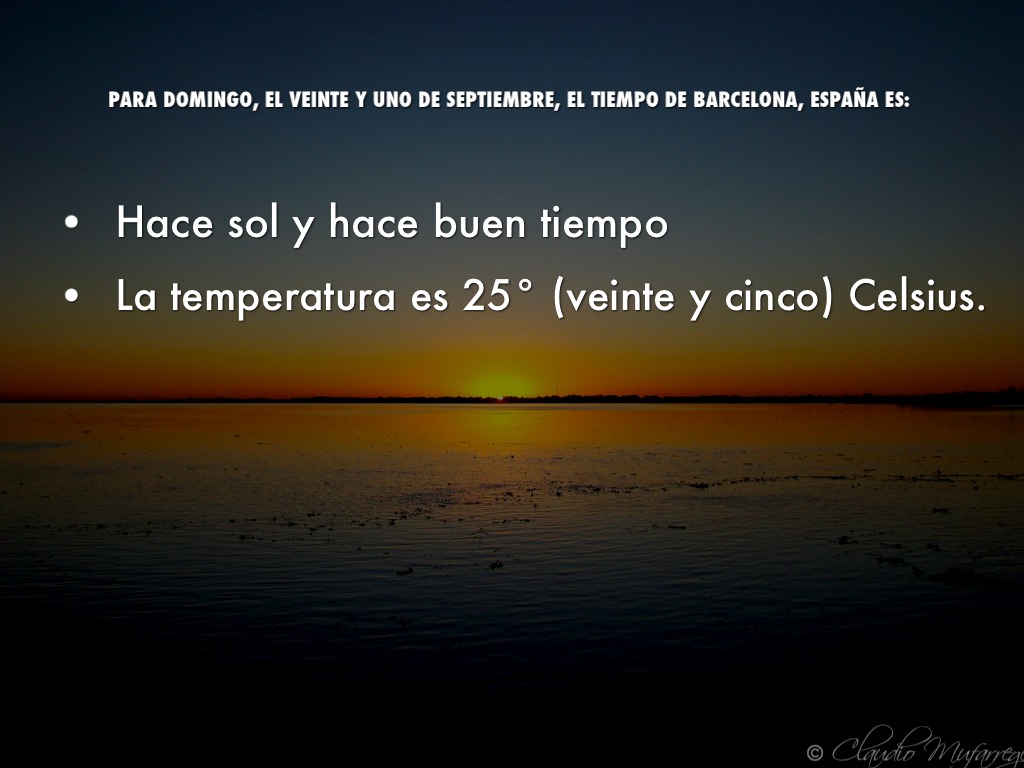 PARA DOMINGO, EL VEINTE Y UNO DE SEPTIEMBRE, EL TIEMPO DE BARCELONA, ESPAÑA ES: