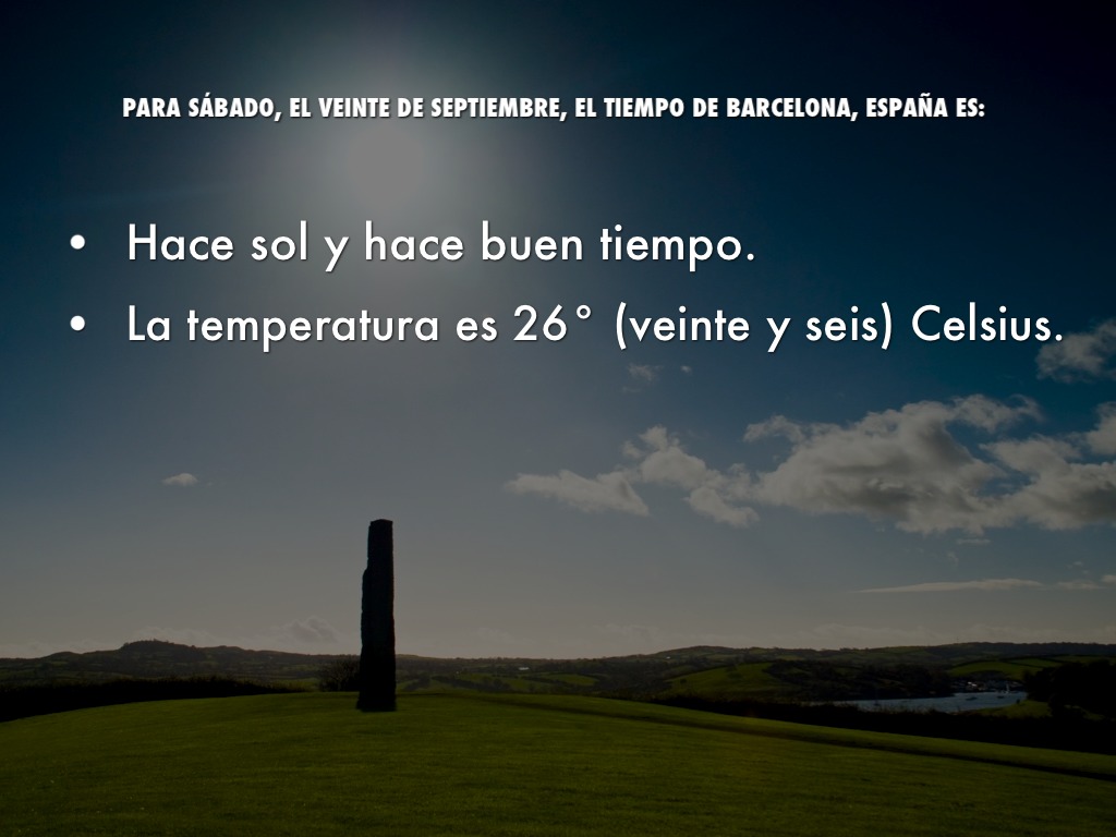 PARA SÁBADO, EL VEINTE DE SEPTIEMBRE, EL TIEMPO DE BARCELONA, ESPAÑA ES: