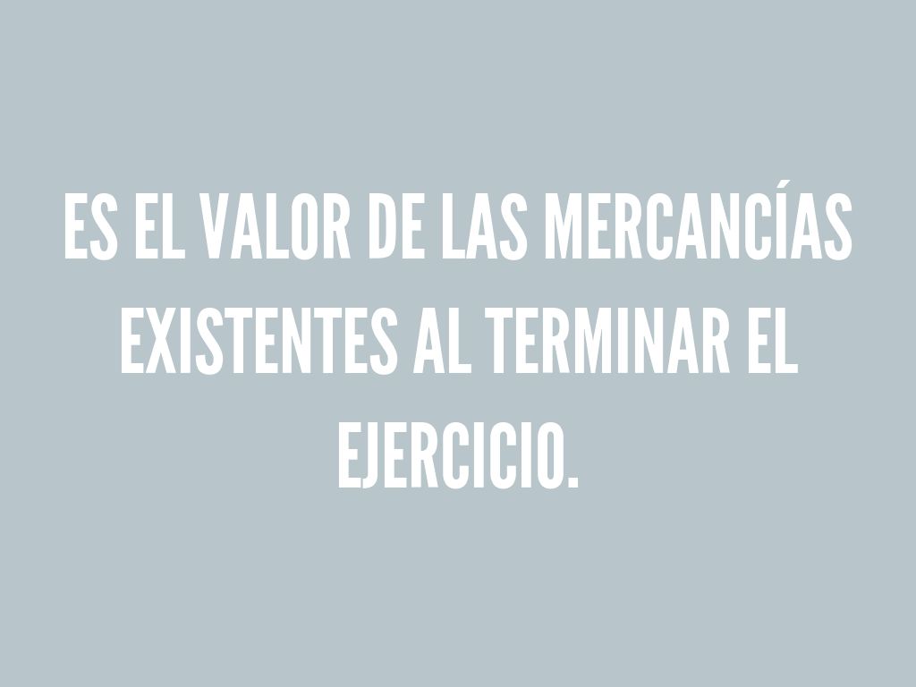 ES EL VALOR DE LAS MERCANCÍAS EXISTENTES AL TERMINAR EL EJERCICIO.
