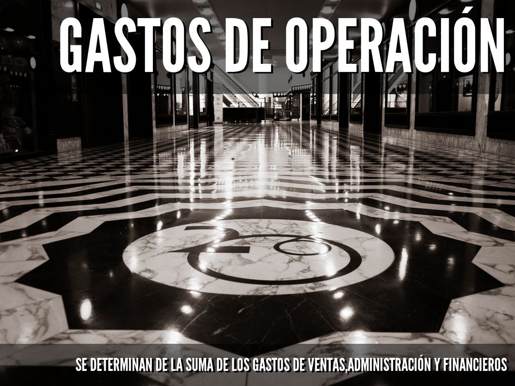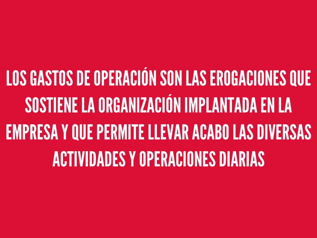 LOS GASTOS DE OPERACIÓN SON LAS EROGACIONES QUE SOSTIENE LA ORGANIZACIÓN IMPLANTADA EN LA EMPRESA Y QUE PERMITE LLEVAR ACABO LAS DIVERSAS ACTIVIDADES Y OPERACIONES DIARIAS