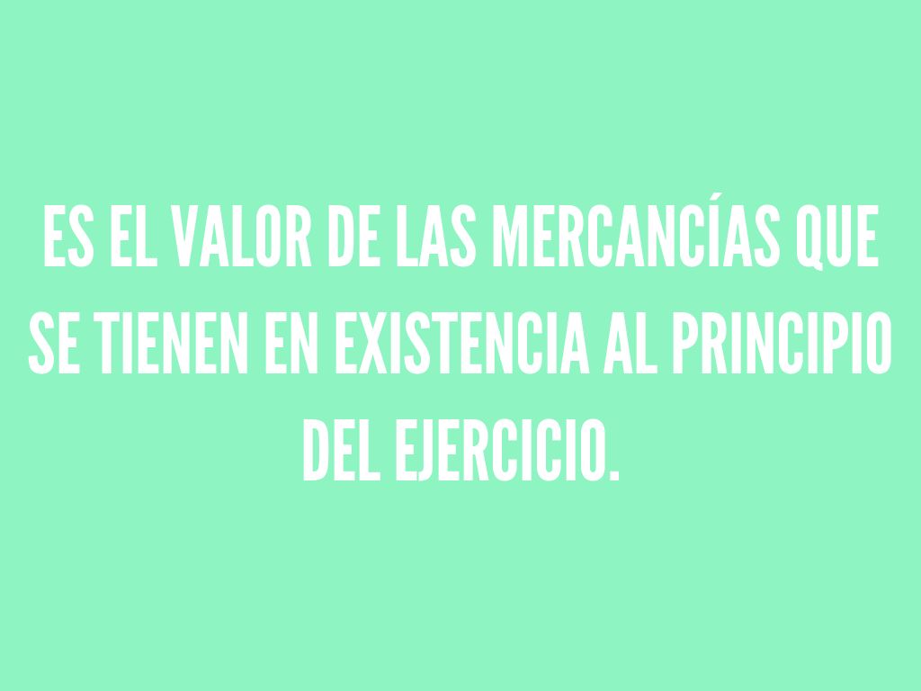 ES EL VALOR DE LAS MERCANCÍAS QUE SE TIENEN EN EXISTENCIA AL PRINCIPIO DEL EJERCICIO.