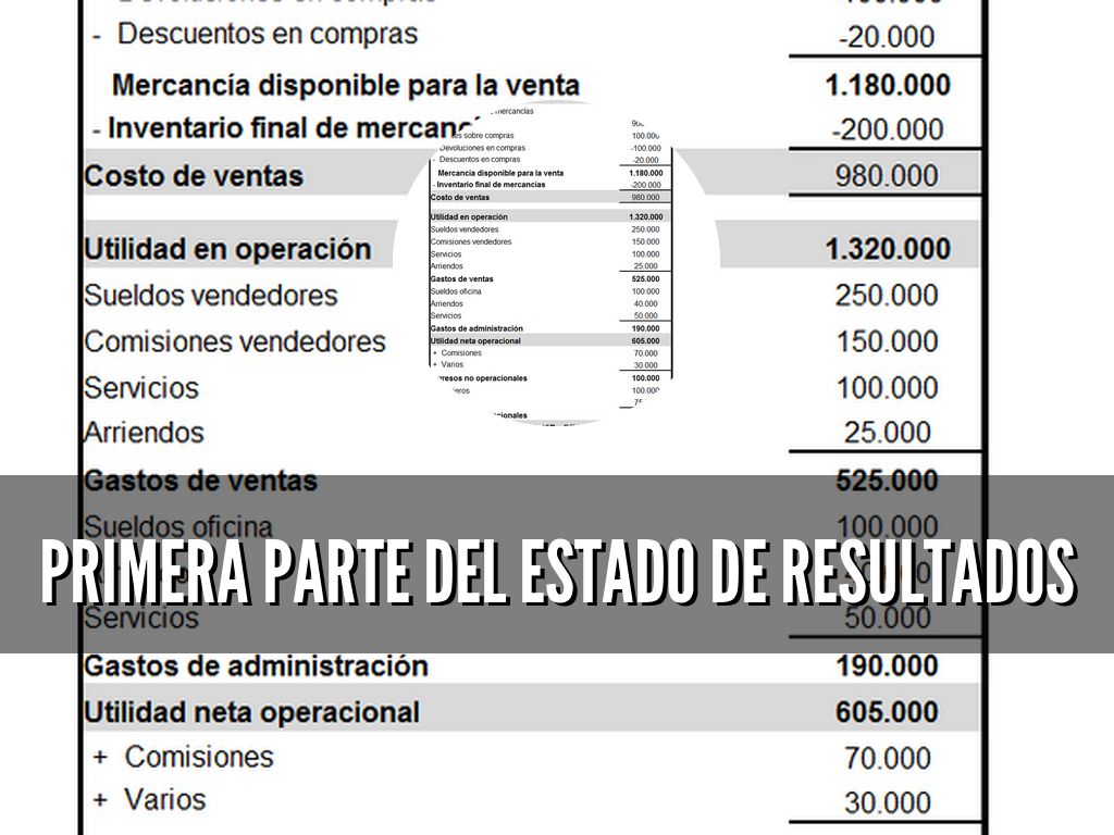 PRIMERA PARTE DEL ESTADO DE RESULTADOS