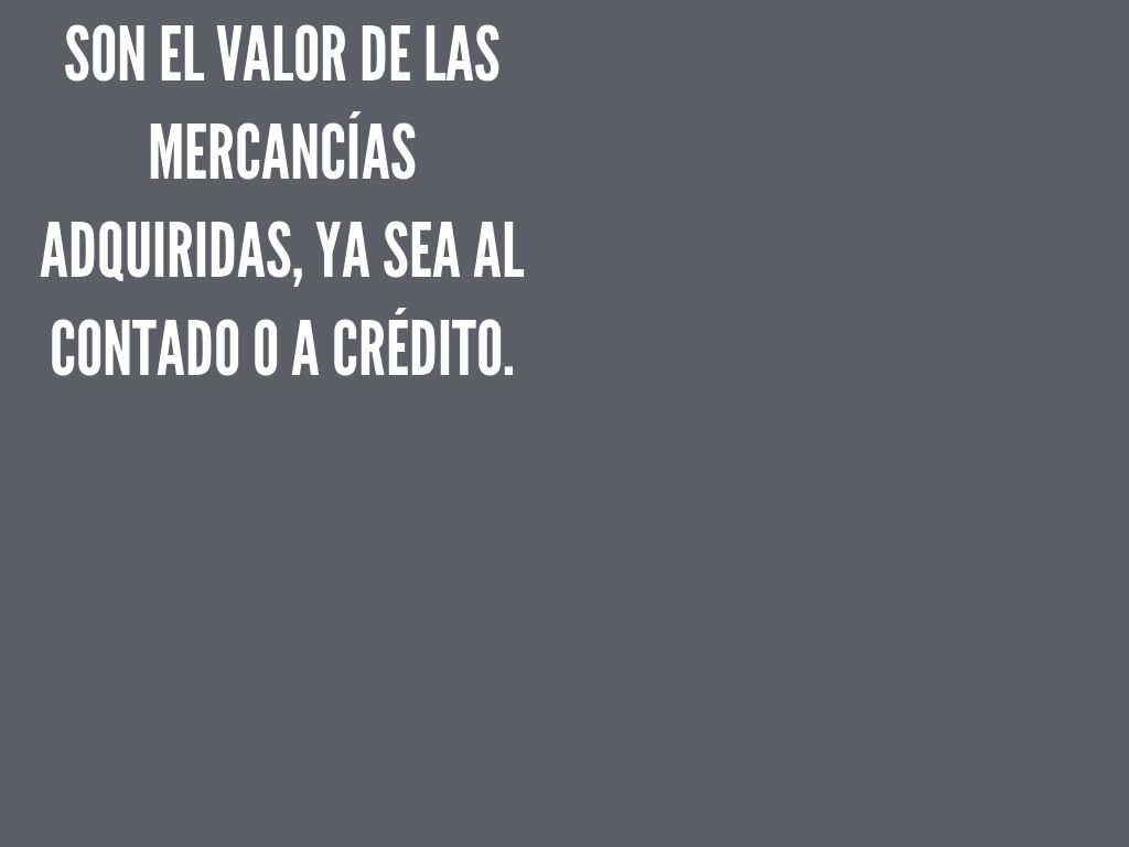 SON EL VALOR DE LAS MERCANCÍAS ADQUIRIDAS, YA SEA AL CONTADO O A CRÉDITO.