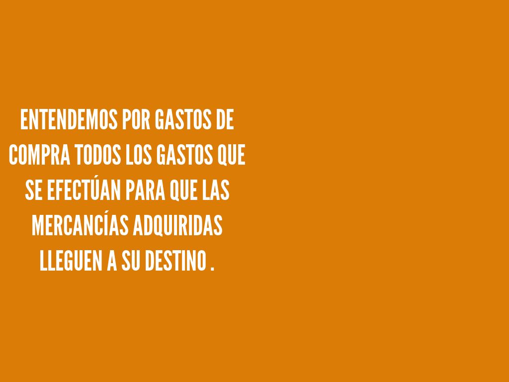 ENTENDEMOS POR GASTOS DE COMPRA TODOS LOS GASTOS QUE SE EFECTÚAN PARA QUE LAS MERCANCÍAS ADQUIRIDAS LLEGUEN A SU DESTINO .