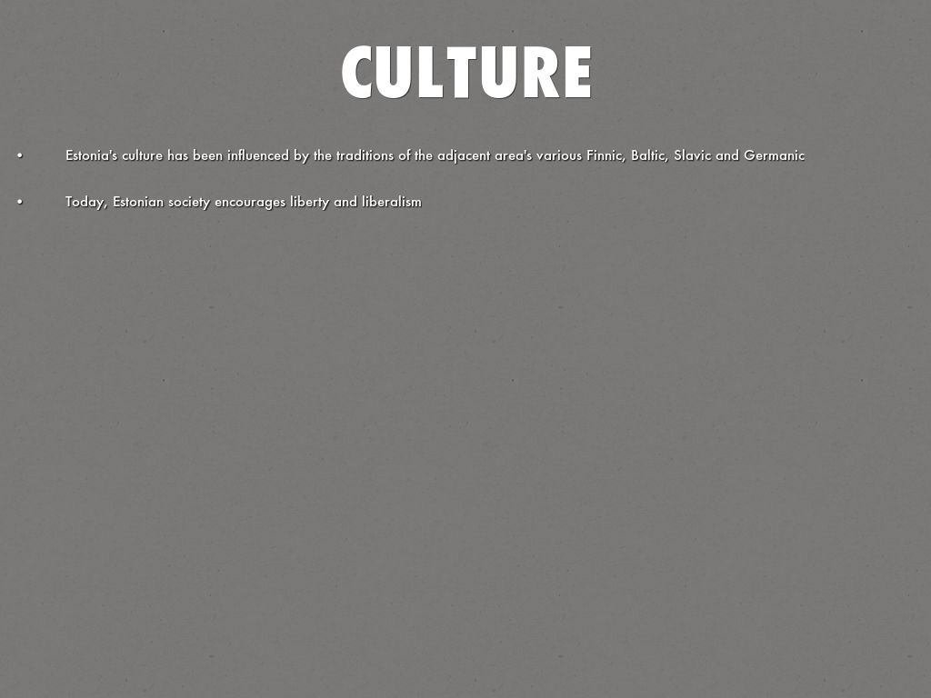 • Estonia's culture has been influenced by the traditions of the adjacent area's various Finnic, Baltic, Slavic and Germanic