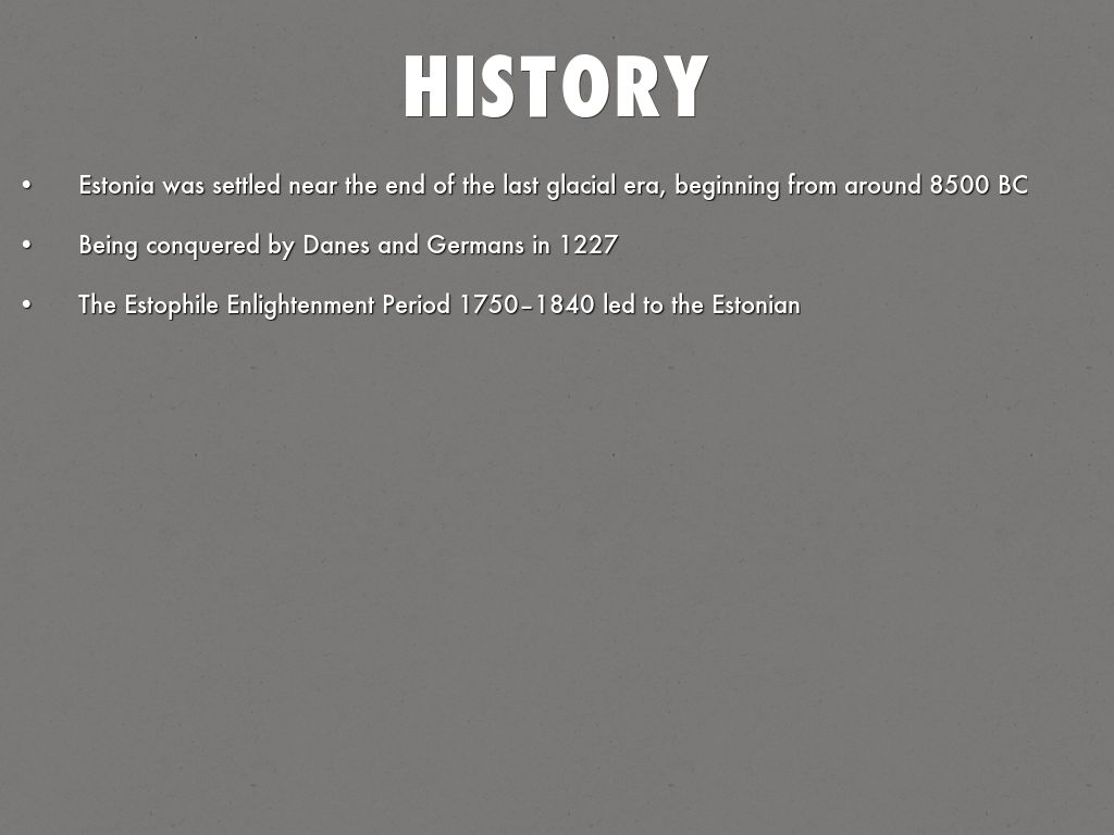 • Estonia was settled near the end of the last glacial era, beginning from around 8500 BC