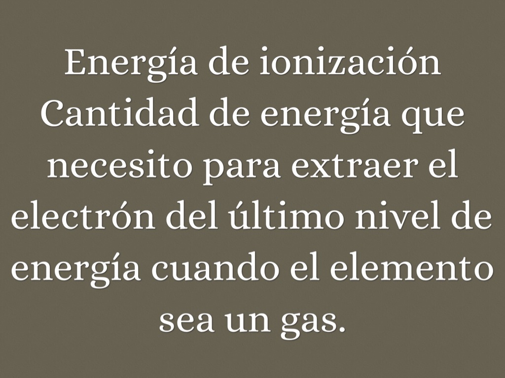 Cantidad de energía que necesito para extraer el electrón del último nivel de energía cuando el elemento sea un gas.