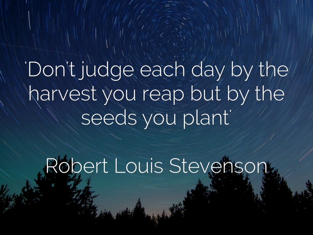 'Don’t judge each day by the harvest you reap but by the seeds you plant'