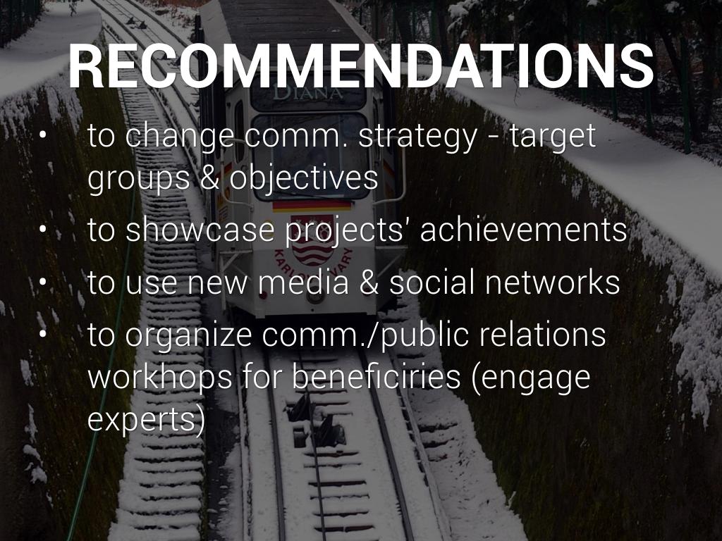 to organize comm./public relations workhops for beneficiries (engage experts)