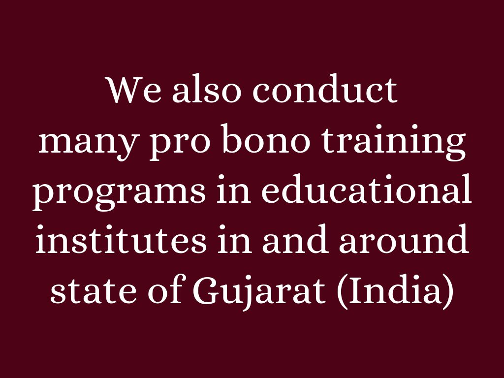 many pro bono training programs in educational institutes in and around state of Gujarat (India)