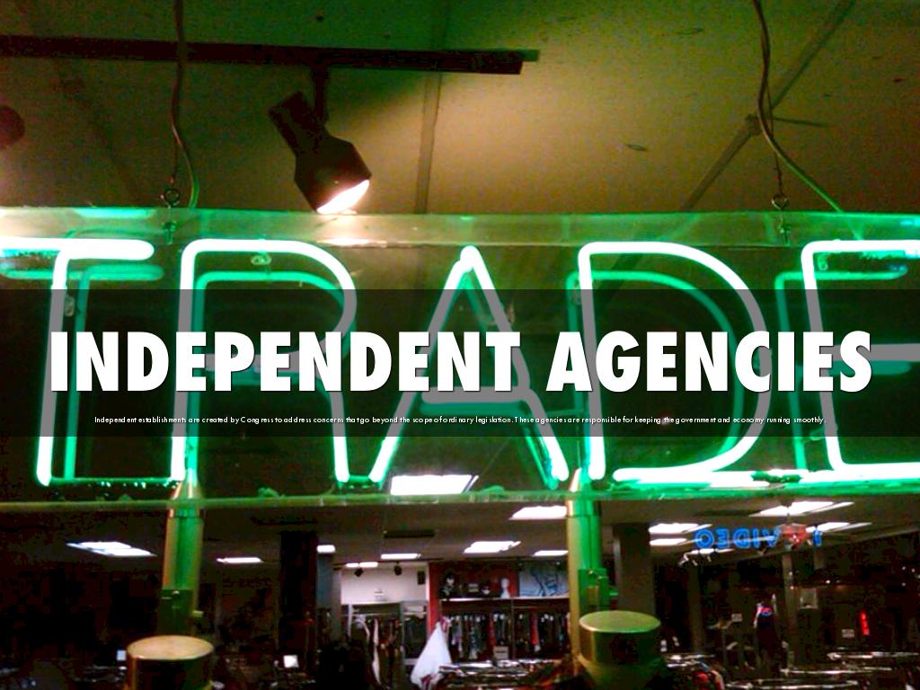 Independent establishments are created by Congress to address concerns that go beyond the scope of ordinary legislation. These agencies are responsible for keeping the government and economy running smoothly.