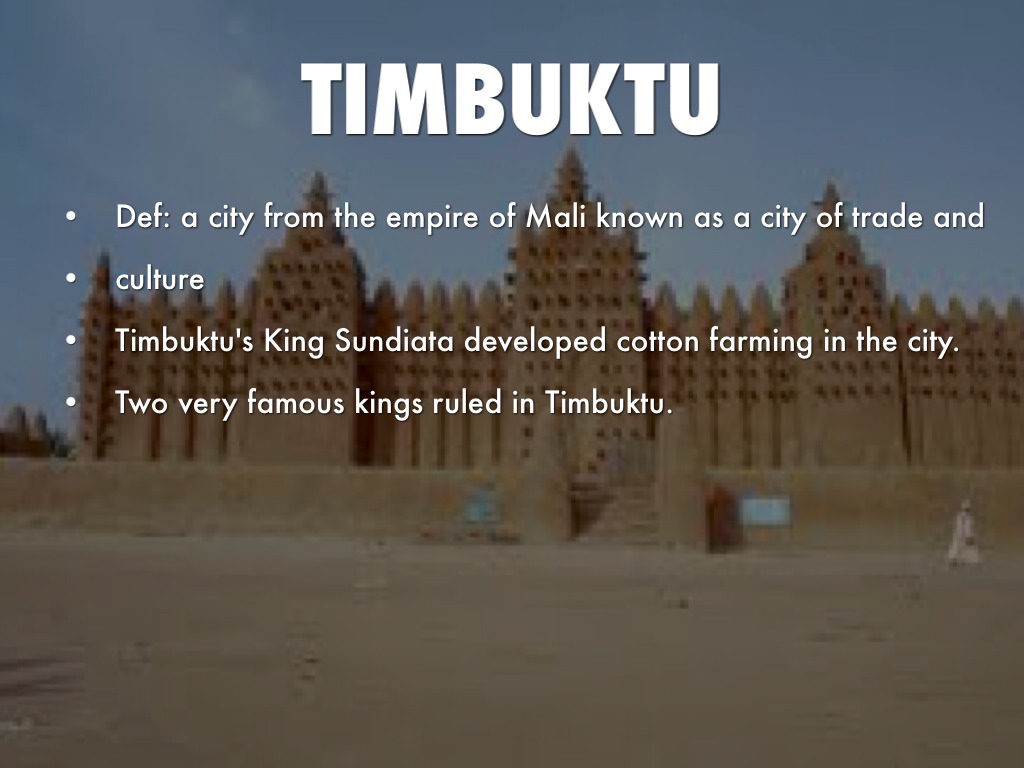 Timbuktu's King Sundiata developed cotton farming in the city.