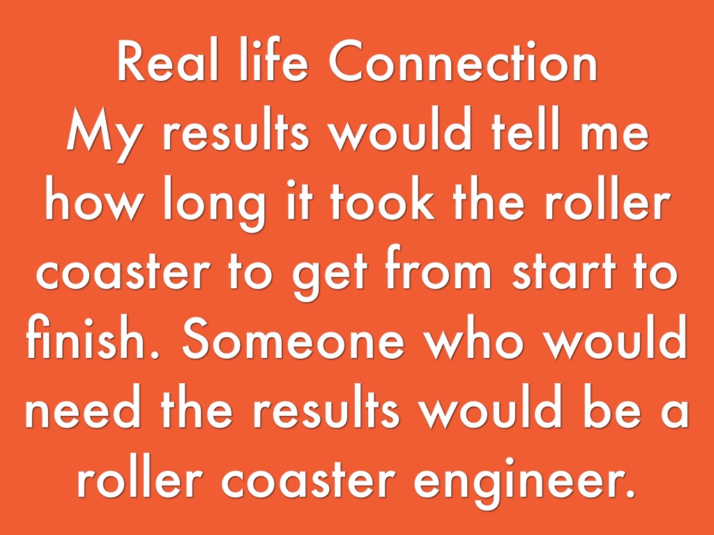 My results would tell me how long it took the roller coaster to get from start to finish. Someone who would need the results would be a roller coaster engineer.