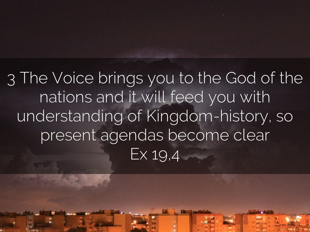 3 The Voice brings you to the God of the nations and it will feed you with understanding of Kingdom-history, so present agendas become clear