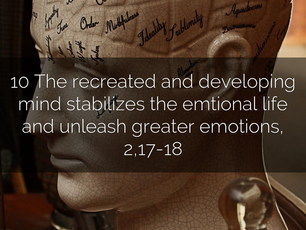 10 The recreated and developing mind stabilizes the emtional life and unleash greater emotions,
