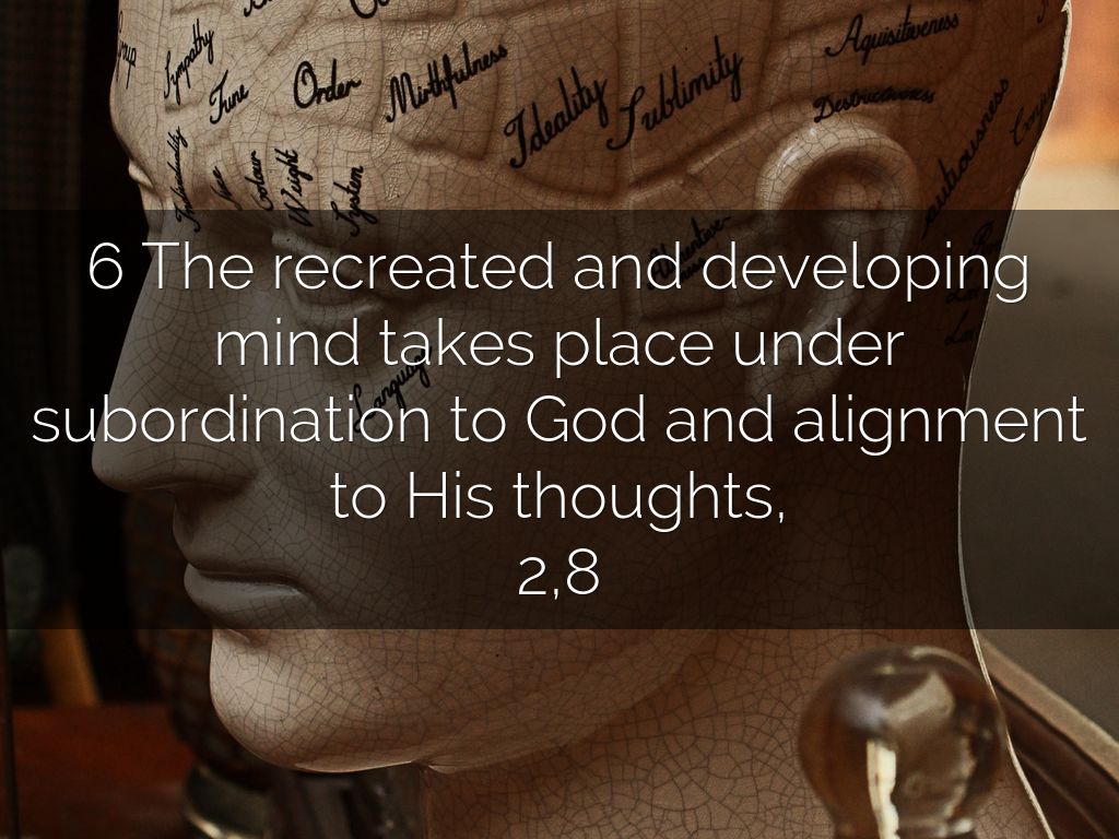 6 The recreated and developing mind takes place under subordination to God and alignment to His thoughts,