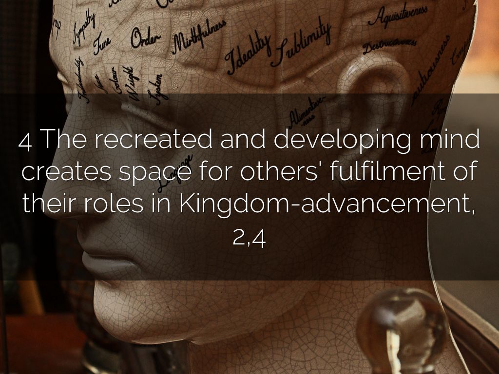 4 The recreated and developing mind creates space for others' fulfilment of their roles in Kingdom-advancement,