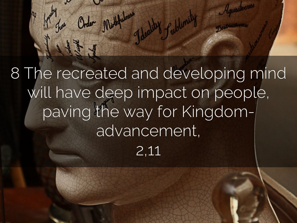 8 The recreated and developing mind will have deep impact on people, paving the way for Kingdom-advancement,