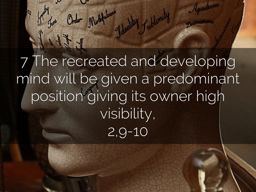 7 The recreated and developing mind will be given a predominant position giving its owner high visibility,