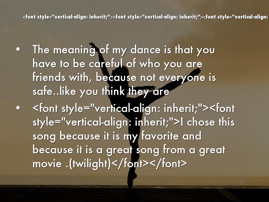The meaning of my dance is that you have to be careful of who you are friends with, because not everyone is safe..like you think they are