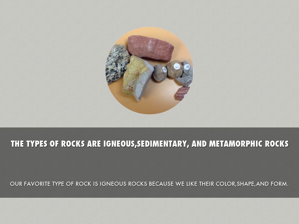 THE TYPES OF ROCKS ARE IGNEOUS,SEDIMENTARY, AND METAMORPHIC ROCKS