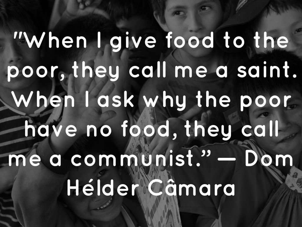 "When I give food to the poor, they call me a saint. When I ask why the poor have no food, they call me a communist.” — Dom Hélder Câmara