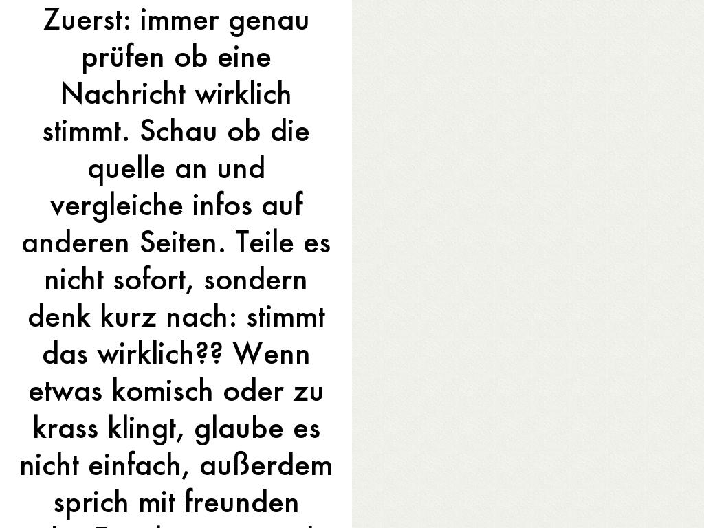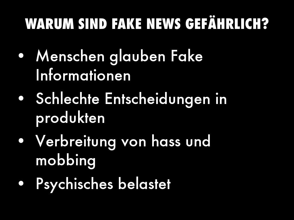 Fake news können Menschen täuschen. Man glaubt dinge, die gar nicht stimmen. Zum Beispiel falsche Infos über Produkte, promis oder gesundheit. Viele leute teilen solche Nachrichten sofort weiter. Das kann zu Problemen führen, weil Entscheidungen auf falsche Infos basieren. Außerdem können fake news die psyche von Menschen beeinflussen sie sorgen für hass, Eifersucht oder Unsicherheit und vor allem verbreiten sie sich richtig schnell, besonders auf …