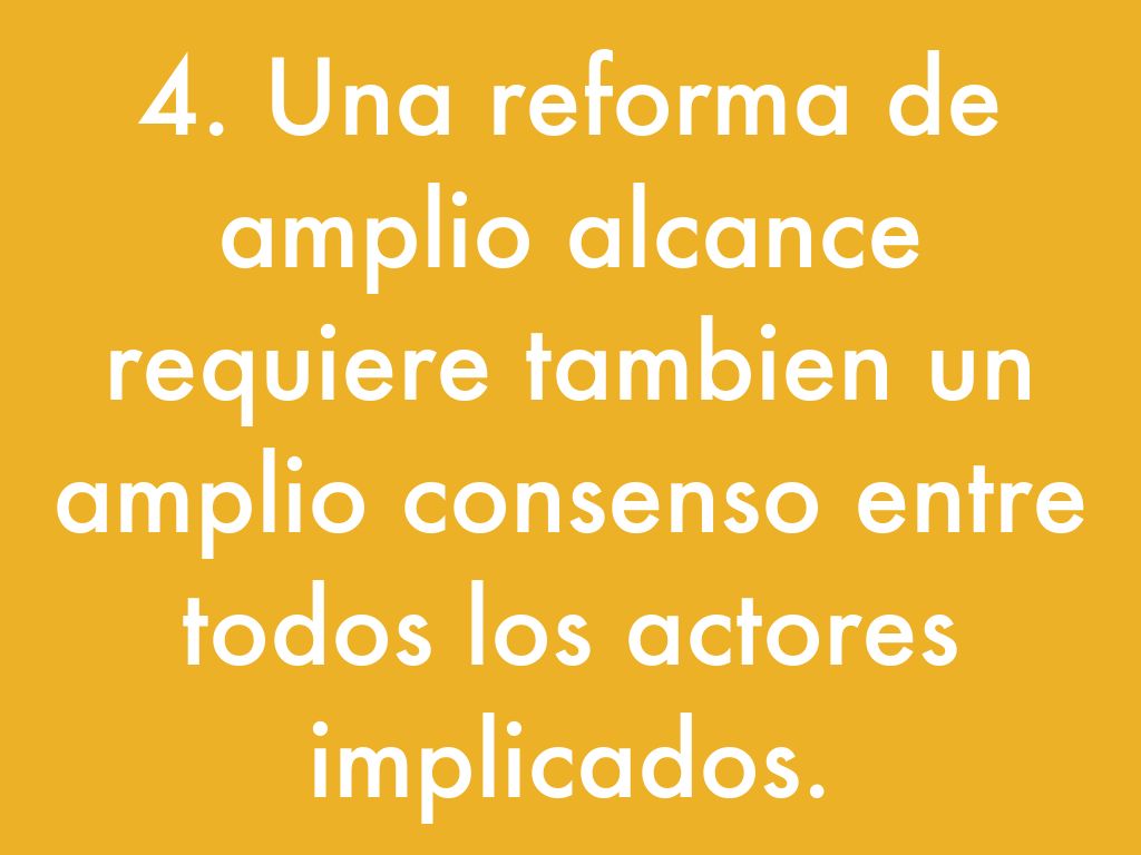 4. Una reforma de amplio alcance requiere tambien un amplio consenso entre todos los actores implicados.