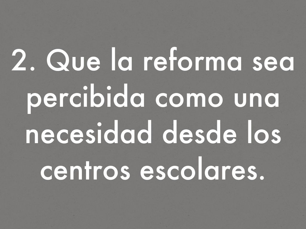2. Que la reforma sea percibida como una necesidad desde los centros escolares.