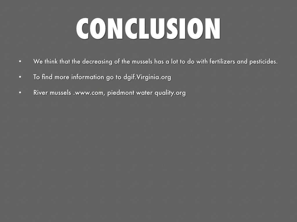 We think that the decreasing of the mussels has a lot to do with fertilizers and pesticides.