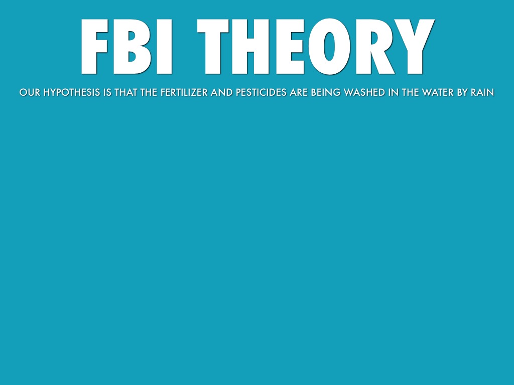 OUR HYPOTHESIS IS THAT THE FERTILIZER AND PESTICIDES ARE BEING WASHED IN THE WATER BY RAIN