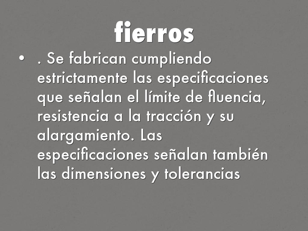 . Se fabrican cumpliendo estrictamente las especificaciones que señalan el límite de fluencia, resistencia a la tracción y su alargamiento. Las especificaciones señalan también las dimensiones y tolerancias